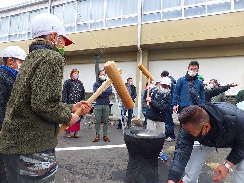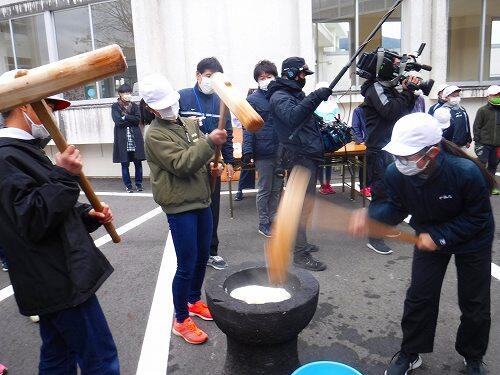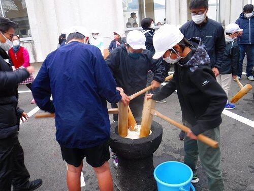 今年は5・6年生だけですが、餅つきをしました。かけ声と餅をつく音が中庭にひびきました。杵と臼でもちをつくのは楽しいですね。