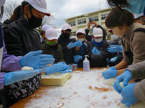 収穫したもち米で作ったみかん大福をみんなで食べました。
