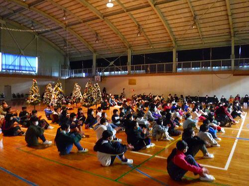 照明が落ちて、歌のプレゼントからスタートしました。体育館に、とてもすてきな歌声がひびきました。