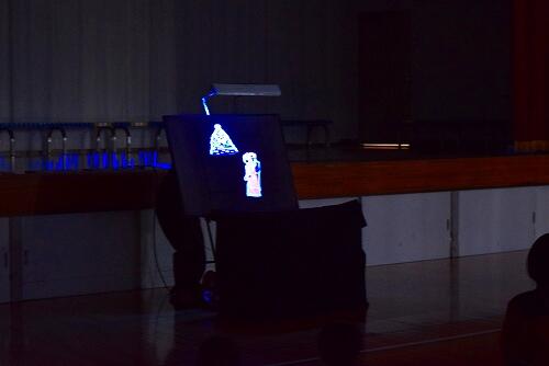 次にブラックシアターがはじまりました。くるみ割り人形のお話でした。子どもたちはじっと聴き入っていました。