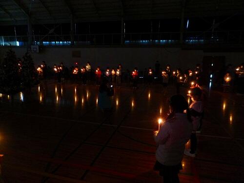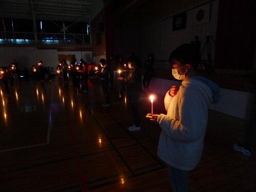 ろうそくに火をつけて、みんなでクリスマスツリーを囲みました。ろうそくの火を見つめ、シーンと静かになると、みんなの心が一つになったような気がしました。