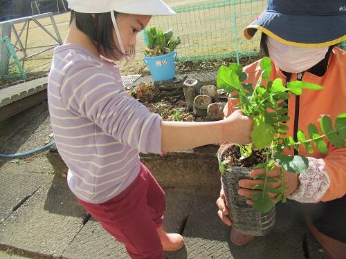 陸人さんが、力を込めて「えい!」と引いたら、おいしそうな大根が姿を見せました。次は、何を育てるのでしょうか。お手伝いいただいた中内さんに感謝です。