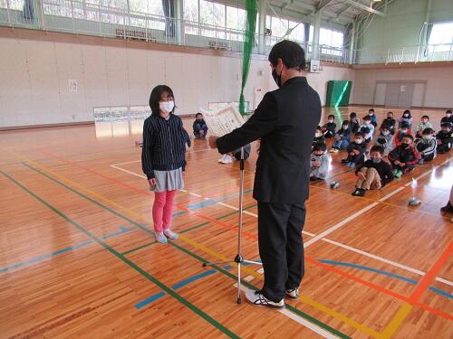 最後に、JA書道コンクールで優秀な成績を収めた4年の後藤愛弥さんの表彰を行いました。