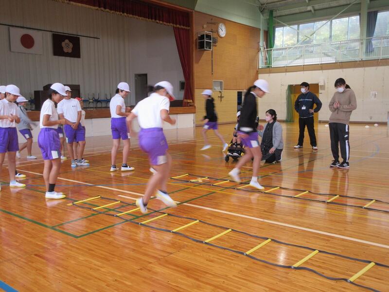 スリーステップや横向きで走るなど、頭の中で考えながら動いていくものもあり、子どもたちも楽しんでチャレンジしていました。