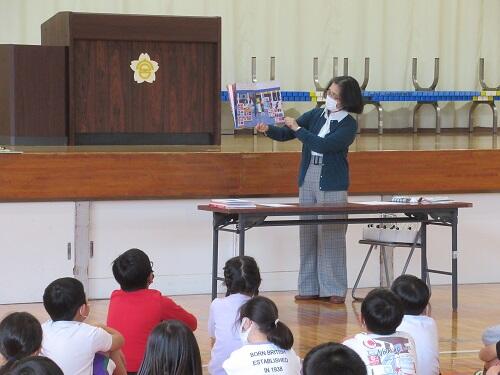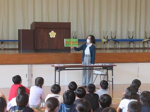 11月24日(木)の5校時に、全校児童対象の読み聞かせを行いました。東京から来られた安富ゆかりさんが忙しいスケジュールの中、読み聞かせをしてくださいました。