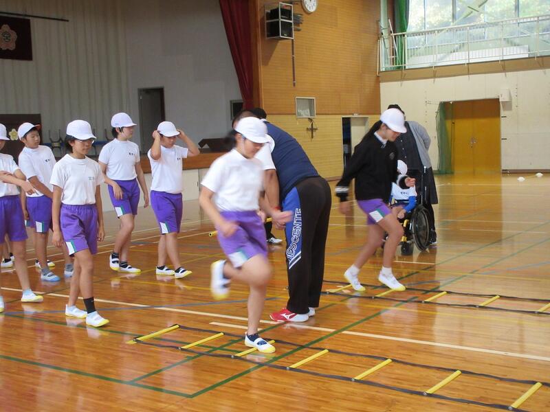 今日で体育振興指導教員の授業も最後です。あいにくの雨でしたので、体育館での授業となりました。