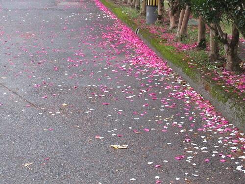 11月30日(水)の朝、紅白のサザンカの花びらが駐車場に散っていてとてもきれいでした。手前には、黄色に色づいたイチョウの葉も落ちていてそのコントラストがとてもすてきでした。登校してきた児童の中には、「きれい」と思わず声を発する子どももいました。自然からのすてきなプレゼントをもらった気分になりました。