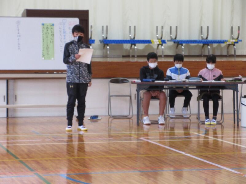 話合いは6年生が中心となって進めていきました。6年生も全校児童の前で司会や記録などをするのは初めてのことでしたが、最上級生らしく自信をもって進めることが出来ました。