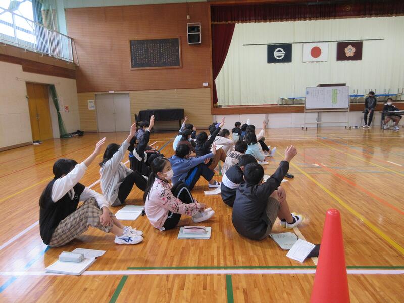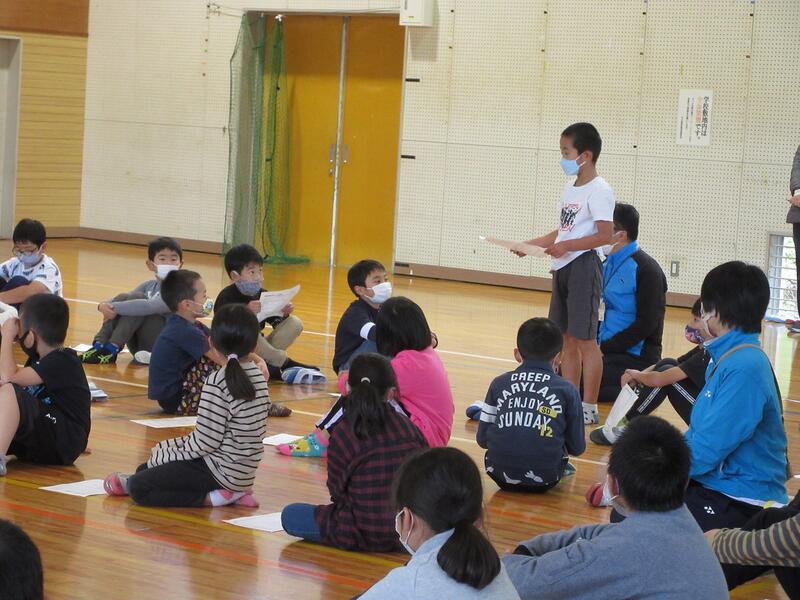 練習方法や道具の使い方、走ったり跳んだりする動きのポイントなどたくさんのことを教えていただき、楽しく体育の学習に取り組むことが出来ました。これからも進んで体を動かしていき、さらに力を伸ばしたいと思います。椎葉先生、御指導ありがとうございました。