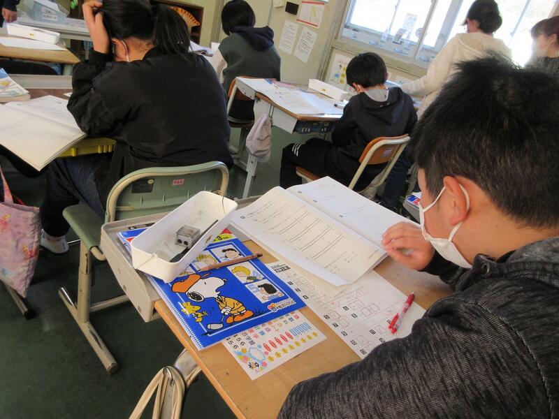 5,6年生が、先日行った「ひのかげ学力テスト」の復習に取り組んでいました。どんなところで間違っていたのかを、記憶が残っているうちにすぐに見直して復習をすることが大事です。(ドイツの心理学者、エビングハウスの忘却曲線でも、時間と記憶の関係が示されています。)