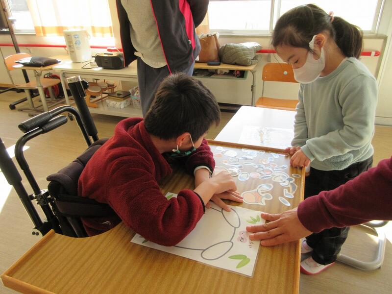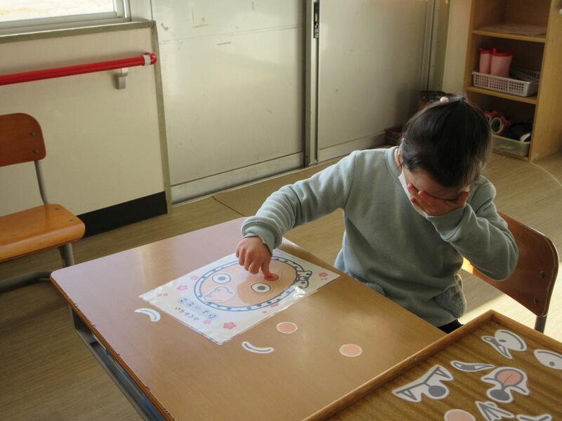 「笑う門には福来る」ということわざがありますが、たんぽぽ学級では子どもたちが福笑いづくりをしていました。
