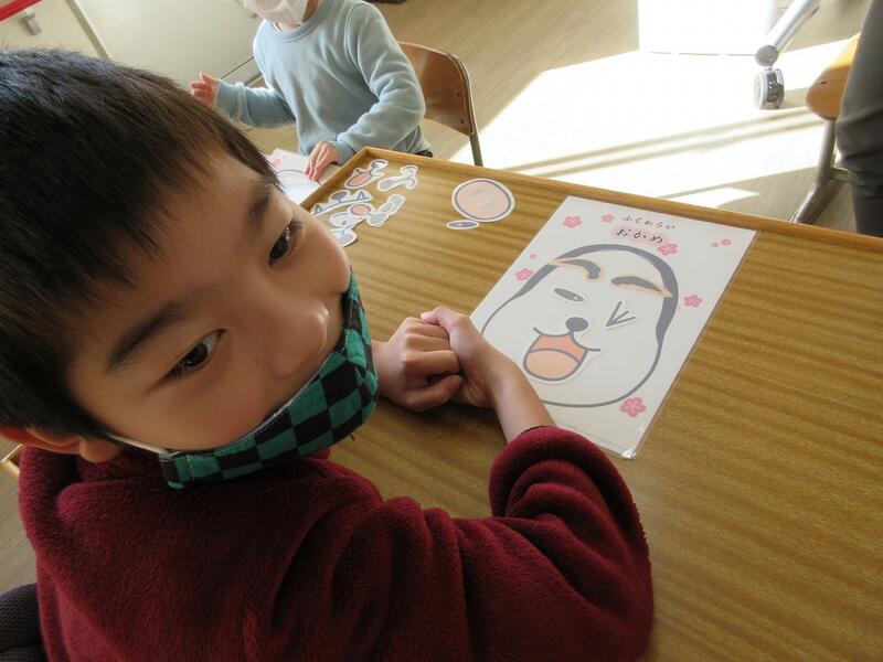 できあがったものを見て思わず笑ってしまう楽しい時間でした。笑い声を聞いて福もたくさんおとずれることでしょう。