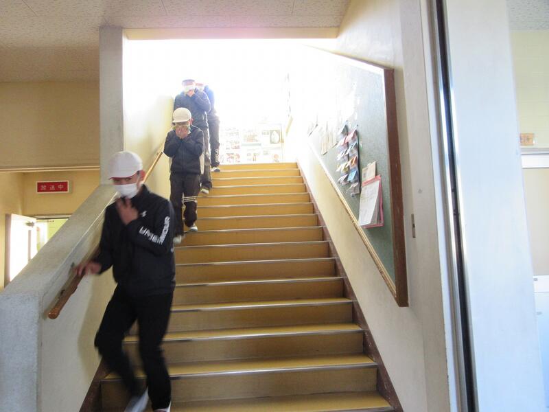 子どもたちは、「おさない・走らない・しゃべらない・もどらない」のいつもの合言葉を意識して真剣に避難をしていました。