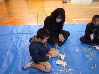 3、4年生は竹でっぽう、竹とんぼを作って遊びました。