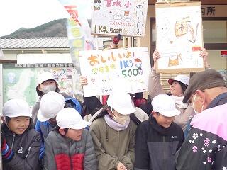 5年生が青雲朝市でもち米を販売しました。たくさんの方々から御購入いただき完売いたしました。ありがとうございました。