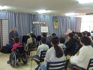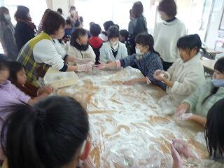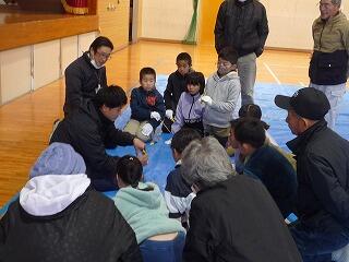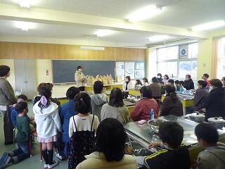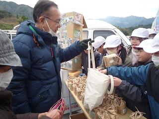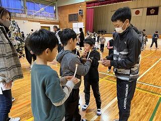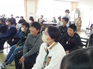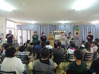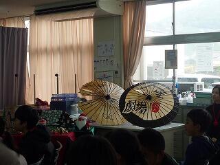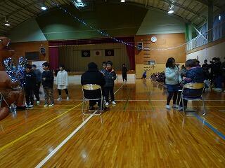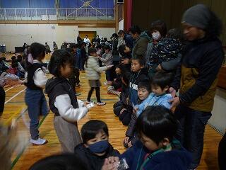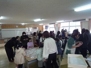 全校児童と祖父母、保護者と交流会を開きました。寒い中でしたが、たくさんの方々にお越しいただきました。参加していただいた方々に学校で作ったへちまのたわしをプレゼントしました。