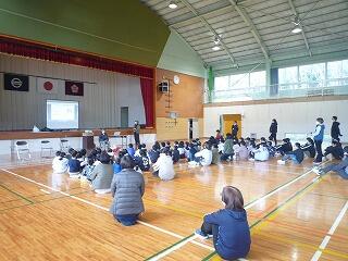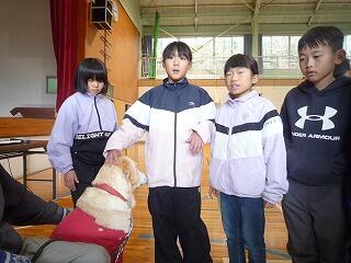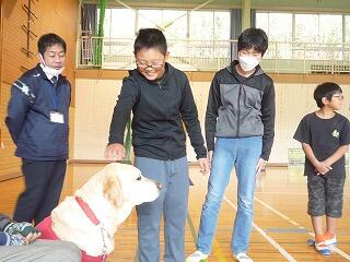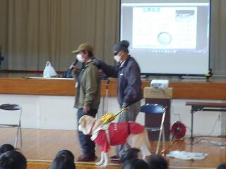 全校児童に盲導犬講話をしていただきました。体験をさせていただいたり盲導犬にさわらせていただいたりしました。とても貴重な勉強をさせていただきました。ありがとうございました。