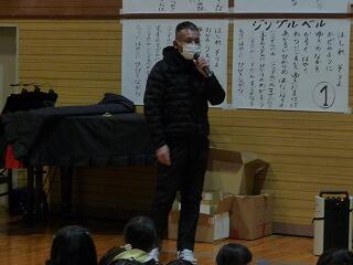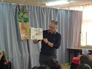 絵本畑さんをお迎えして全校読み聞かせを行っていただきました。1~4年生、5、6年生に分かれて行いました。たくさんの本や道具を使った演出に笑いあり感動ありのすてきな時間でした。ありがとうございました。