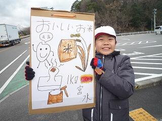 5年生が青雲朝市でもち米を販売しました。たくさんの方々から御購入いただき完売いたしました。ありがとうございました。