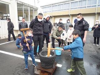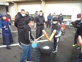 ふれあいの夕べの準備のため、ツリーの飾りつけともちつきを行いました。