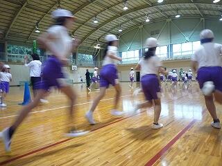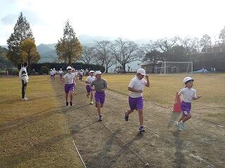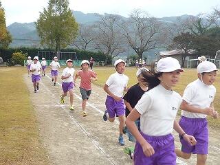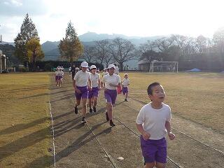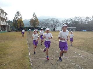 寒い中、全校児童で晴れた日は運動場で、雨の日は体育館で持久走をよく頑張りました。