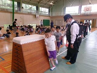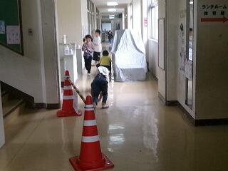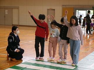 本日警察の方々を講師にお迎えして交通安全教室を実施しました。雨のため体育館の中に信号機の準備をしていただき登校班ごとに横断歩道を歩く学習をしました。また、交通安全についてDVDで勉強をしました。6年生が代表で御礼の言葉を述べました。