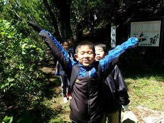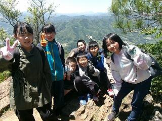 全員で声を掛け合いながら頑張りました。町民歌を歌って元気を出しました。ついに頂上に到着です!
