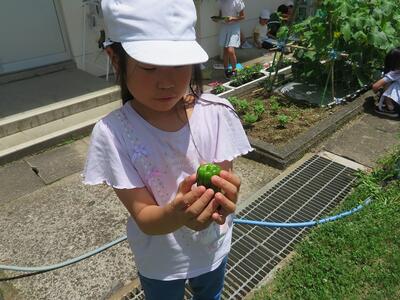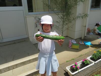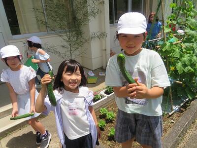 2年生が生活科の時間に育てている野菜の収穫を行いました。これまで大切に育ててきた野菜が実をつけ、子どもたちは大喜びです。今回は、大きくなったピーマンやキュウリを収穫しました。6月も後半に入り、ずいぶん暑さが増してきました。これからもしばらくの間は、収穫の喜びを感じることができるでしょう。