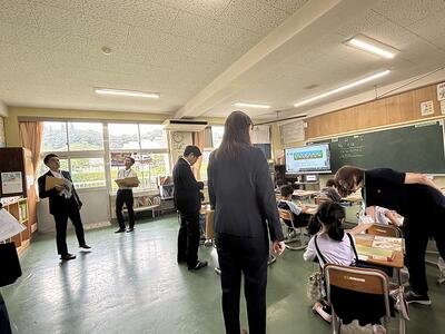 6月18日(水)に第1回学校支援訪問がおこなわれました。北部教育事務所、日之影町教育委員会の方々にお越しいただき、学校の様子をご覧いただきました。各学級の授業の様子や保健室、給食関係についても参観していただいたり、説明を聞いていただいたりしました。また、4年生で行われた研究授業も参観していただきました。午後は、午前中の各授業に対して個別のアドバイスをいただいたり、研究授業について協議したり、指導助言や講評をいただいたりしました。