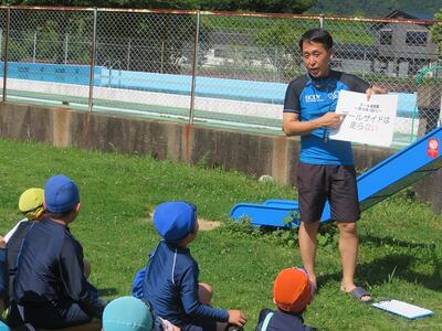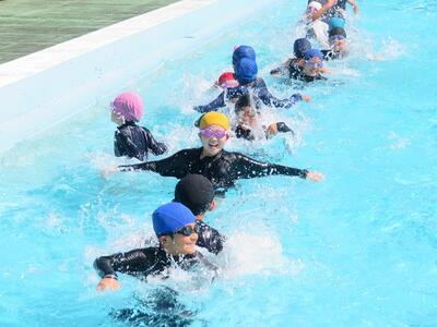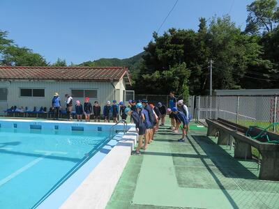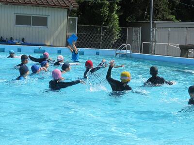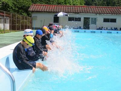 3年生・4年生のプール開きが行われました。天候の関係で、全学年の中で最後のプール開きです。この日を待ちわびていた3・4年生は、担任からの注意事項などをしっかり聞いたり、今年度のそれぞれの目標を立てたりしました。その後、プールサイドで準備運動などをを行いました。プールに入る前のシャワーの場面では、他の学年と同じように水の冷たさに思わず声を上げていました。そして水慣れの時間。天気がすごくよかったため、水温も高めでとても気持ちよさそうでした。3年生は、床の高さの調整がしていないプールに少し戸惑っていましたが、少し時間がたつとすっかり慣れ親しんでいました。7月中旬まで水泳の学習が続きます。自分の命を守ることができ、たくさんの成長が見られる水泳の学習が充実した時間になることを願っております。