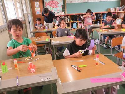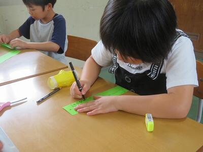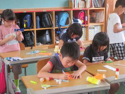 2年生が七夕飾りづくりを行いました。まず初めに、短冊に願い事を書きました。自分のことや家族のことなどを心を込めて丁寧に書き込んでいました。その後、飾りづくりに挑戦しました。これまでつくったことのない飾りにも挑戦していました。今年は早くも梅雨明け。7月7日には、素敵な天の川を見ることができるといいですね。そして、みんなの願い事が叶いますように!