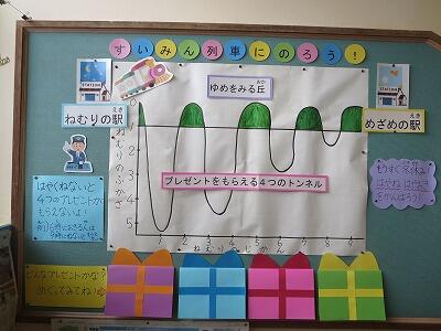 寝ている間には、成長期には欠かせない大切なホルモンが4つ分泌されます。しかし、遅くまで起きていると、そのホルモンは分泌されにくくなってしまいます。睡眠列車に乗って、4つのホルモン(プレゼント)を受け取るために、遅くても10時までには寝てほしいと思います。もうすぐ冬休みです。夜更かしをしすぎないようにしましょう。