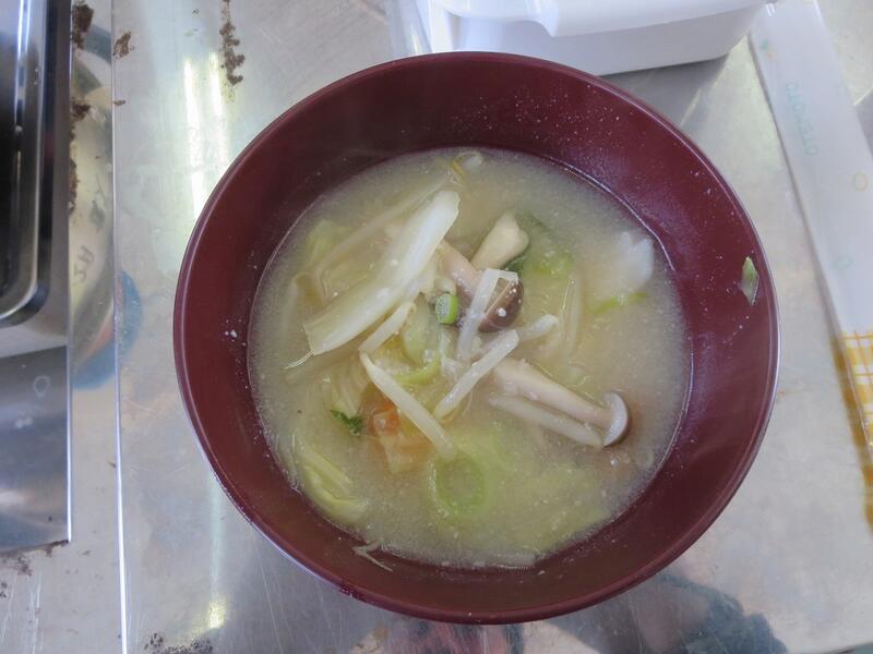 家から作ってきたおにぎりと一緒にワンタンスープをいただきました。かくし味のにんにくも効いて、とてもおいしかったです。