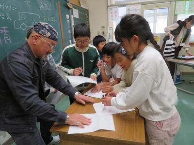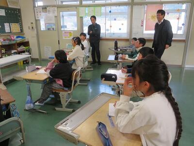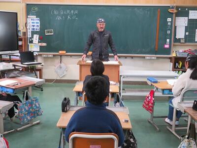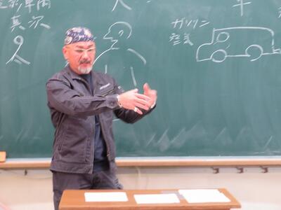 4年生が、講師の方と学習を行いました。今回の講師は、(有)日之影車両の飯干様でした。自動車の仕組みについての大まかな説明や世界の自動車事情、飯干様のこれまでの経歴などについてお話をしていただきました。その中で、飯干様のモットーとしてのお話がありました。「日之影町で、大きな町場と変わらない技術を持ってお客様に対応すること」ということを聞いていた子どもたちは、頷きながら懸命にメモを取っていました。また、「上の目標に向かって、踏ん張って努力すること」の大切さについても述べられ、子どもたちは目を輝かせながら聞き入っていました。また、日之影弁について話される場面では、子どもたちが笑顔になり、早速使う場面もありました。お話の中で何度も感じたことが、「日之影愛」です。飯干様は、「日之影町はすばらしいところ。自分が日之影町出身であることを自慢してほしい。」と何回もおっしゃっていました。子どもたちは、何回も頷きながら笑顔で話を聞いていました。子どもたちは、講話の内容と飯干様のお人柄に感銘を受け、帰り際にはサインを求めていました。今回、ご多用な中にもかかわらずお話しいただきました(有)日之影車両の飯干様に心より感謝申し上げます。ありがとうございました。