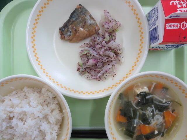 ★9月8日(火)の献立は、7日(月)に予定していた献立(麦ご飯、サバのゆずみそ煮、ゆかりあえ、れんこんだんご汁、牛乳)に変更になります。