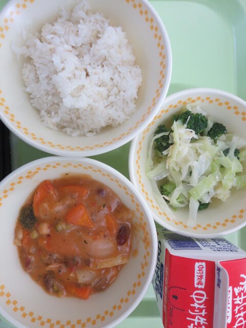 みなさんは「せいこんつきはてる」という言葉を知っていますか。これは、物事をなしとげようと体力も精神力も使い果たしてしまうことをいいます。そんな時、昔の人は、だいこん、れんこん、こんにゃく、こんぶ、ごんぼう(ごぼうのことです)など、「こん」のつく食べものを食べるとよいと言っていたそうです。これは生活の知恵からいわれたものですが、それが今、食物せんいを含む食品として注目されています。今日の給食には「ごぼう」「れんこん」「こんにゃく」が入っています。「こん」のつくものをよくかんで食べてがんばりましょう。