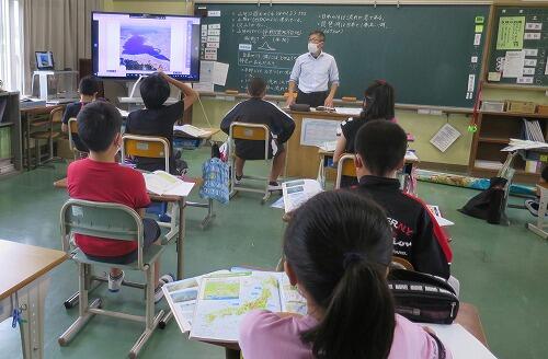 5年生が社会の時間に、地図帳を見て話し合っていました。
