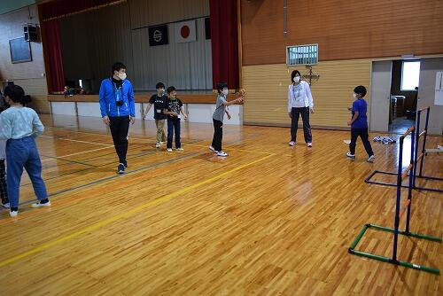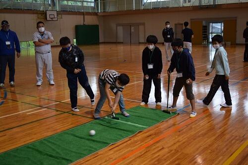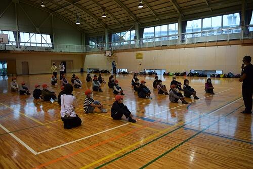 雨のため、体育館での結団式となりましたが、子ども達は元気いっぱいで活動をスタートすることができました。開会式のあと、ニュースポーツ大会を行いました。簡単そうで難しい競技にみんな大盛り上がりでした。