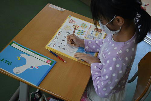 1年生では、数字の書き方を学習していました。6と9の書き方によく注意して練習していました。姿勢もとてもいいです。