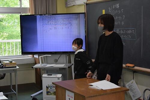 文章問題ができると、友達が作った問題をみんなで解きました。自分たちが作った問題を解くのはとても楽しそうでした。