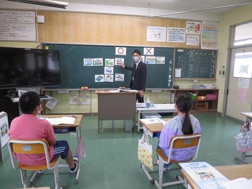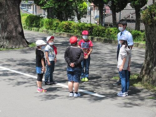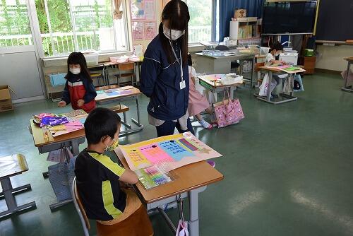 1年生は、生活科で校内探検をしていました。前回は、2年生に案内や説明をしてもらいましたが、今回は自分たちだけで探検しました。あいさつしたり、質問したりとしっかりと学習に取り組めていました。