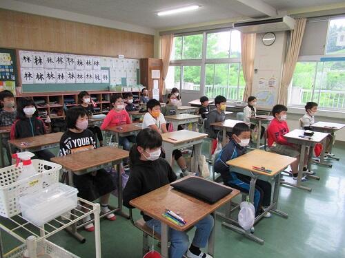 5月7日(金)の朝に全校朝会を行いました。新型コロナウイルス感染症対策として、今月は放送で行いました。新鮮な感じがして、全校児童も真剣に放送を聞いていました。