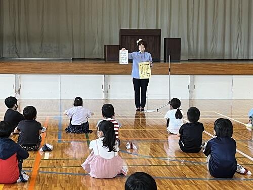 5月6日の朝、5月の全校朝会がありました。生徒指導主事の今村先生から今月の目標である「あいさつ」の話がありました。あいさつのすばらしい3名の児童(後藤魁仁さん、平川翔也さん、小川桂さん)の紹介がありました。あいさついっぱいの学校を目指しています。