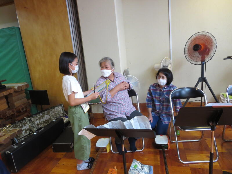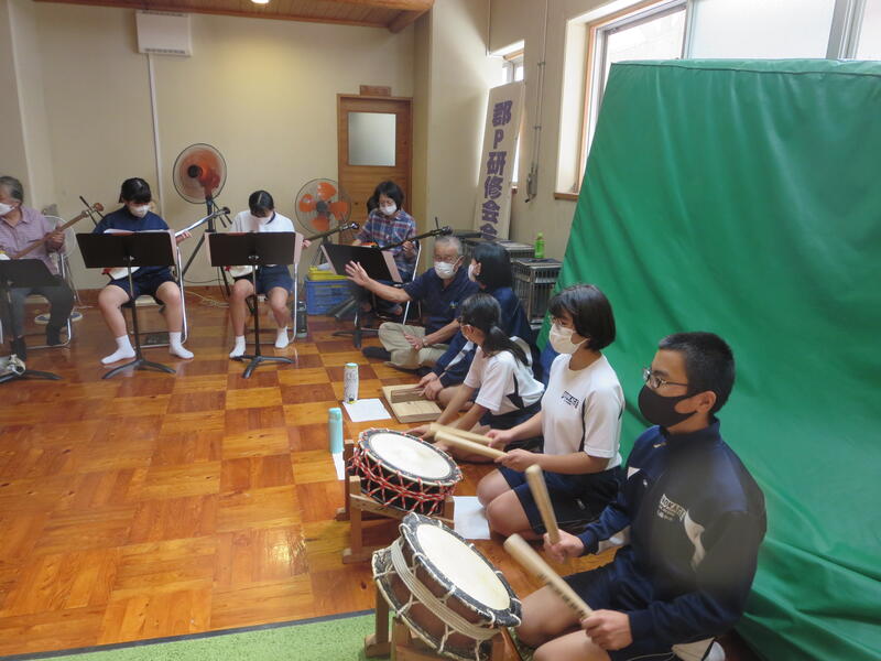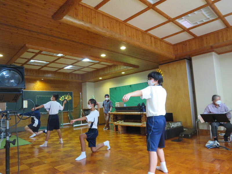 まずは、練習の様子を見学させていただきました。地域の指導者の方に教えていただきながら、実際に歌舞伎の踊りや演奏を練習しているところです。