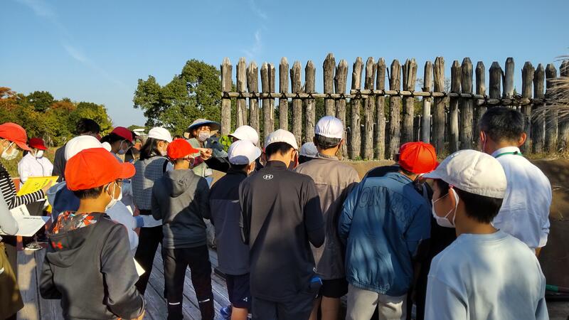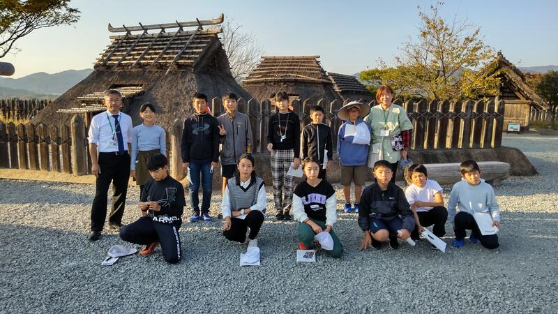 吉野ヶ里遺跡を見学しました。広さがディズニーランドぐらいだそうです。ガイドさんから環壕集落などの説明がありました。