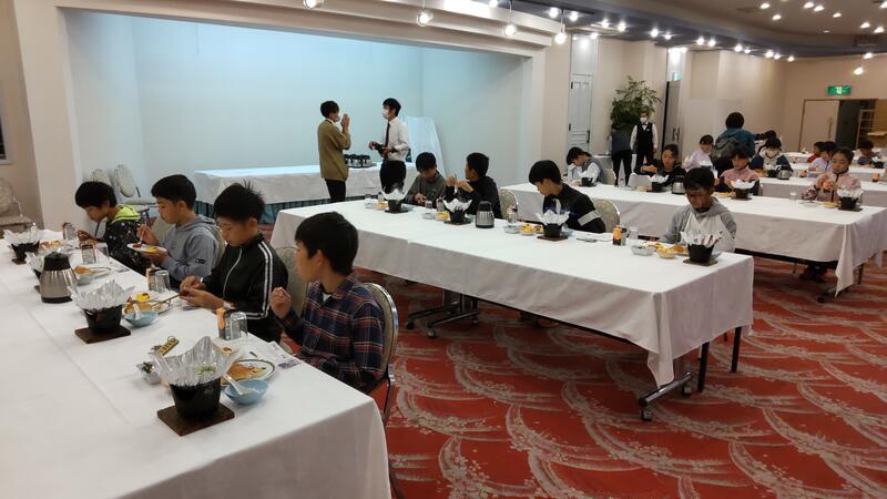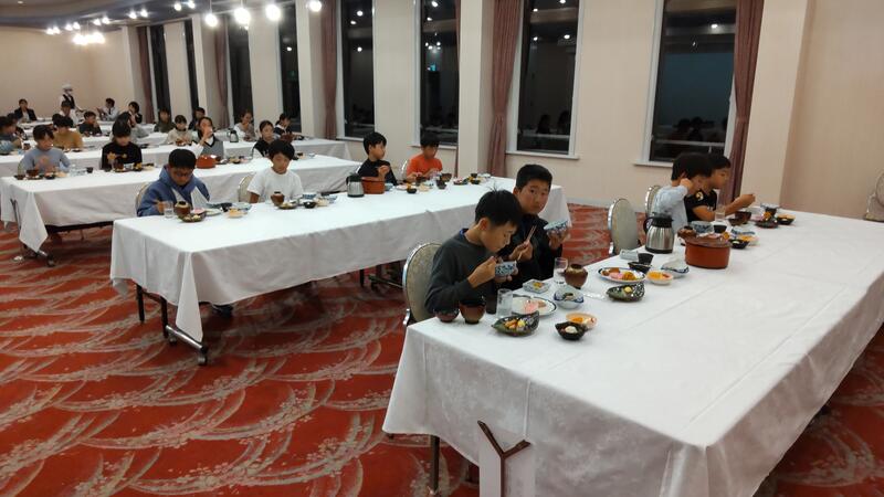 いよいよ夕食です。美味しそうなおかずがたくさんありました。お昼にあんなに食べてたのにまたおかわりしている男子がいました。食べ盛りですね。