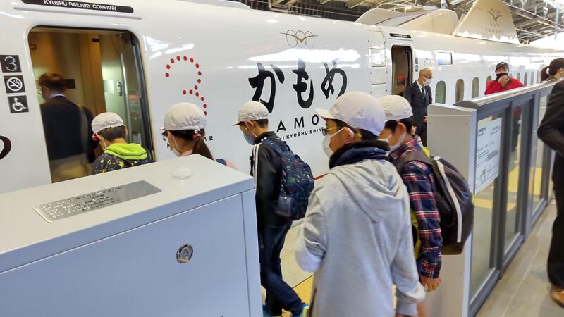 かもめは長崎を出発して武雄温泉駅で折り返して再び長崎方面へ向かいます。そのため座席を反対向きにする作業が必要です。作業が済んで、いよいよ乗車です。