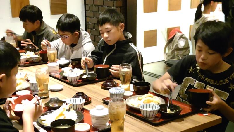 二日目のお昼は、長崎駅の朝次郎でいただきました。メニューは、天婦羅でした。最後にシャーベットが出ました。お腹ペコペコでしたので、とても美味しかったです。