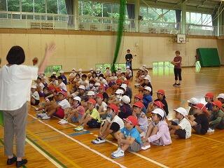 地震に備えての避難訓練を行いました。雨だったので体育館へ避難しました。緊急の時、「自分で考えて自分で行動し、自分の命を自分で守ること」ができるようにこれからも訓練を重ねていきます。