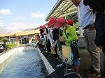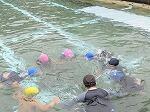 服を着てプールに入る体験をしました。